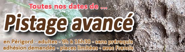 Nous œuvrons à promouvoir et développer l’Art du Pistage en Périgord (et plus largement) à travers nos ateliers & stages originaux & variés, à travers nos livrets & jeux pédagogiques, nos connexions aux Peuples Premiers qui pistent toujours de manière active, et à travers notre groupe Périgord Pistage qui vise à redonner une utilité sociale à notre passion !
