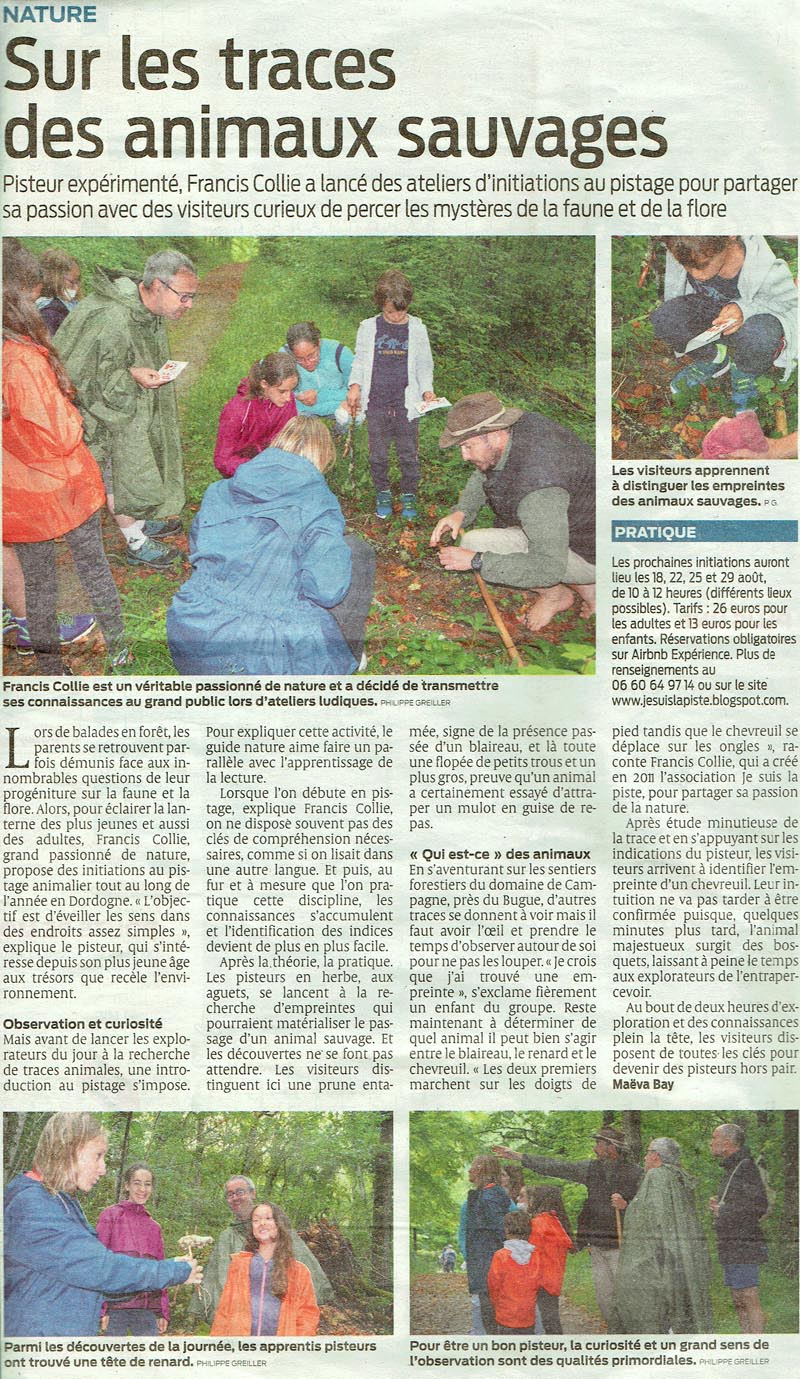 Bel et grand article sur nos ateliers Pistage dans le web-journal Ici, tout va bien !