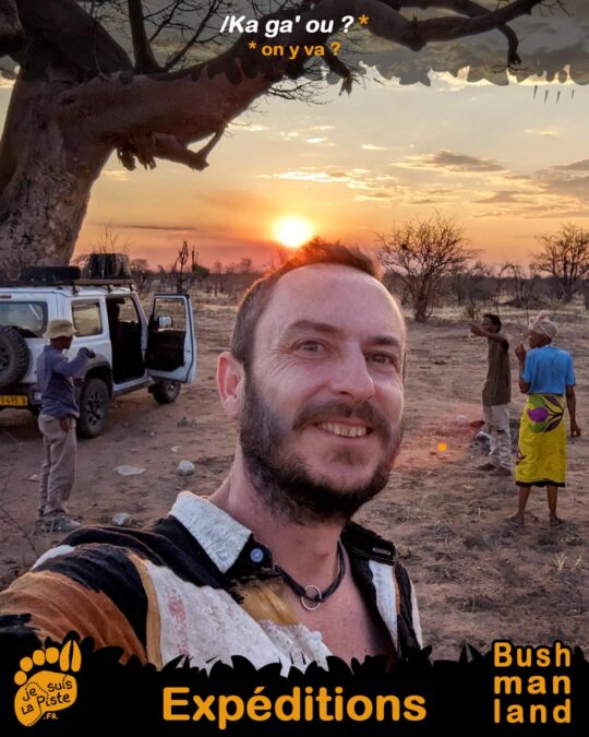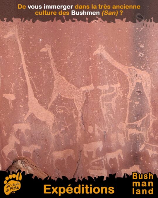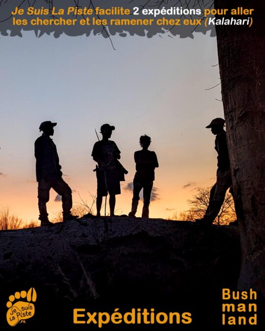 1) Expédition Aller pour les récupérer en 4×4 dans le Kalahari, avec 5 Explorateurs-Accompagnateurs qui s’immergeront dans leur univers et iront découvrir avec eux l’Art pariétal de leurs ancêtres dans le Damaraland.