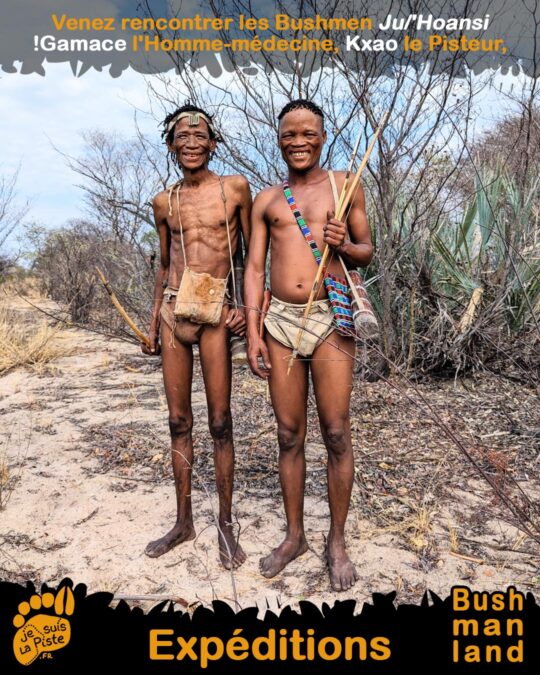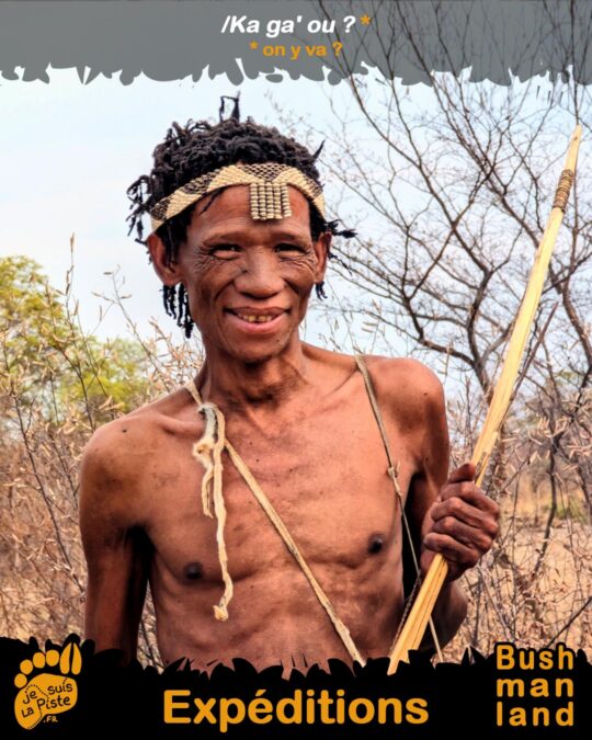 Kxao est un Pisteur, chasseur et conteur d’exception. !Gamace est l’Homme-médecine de son village (Tsumkwe), sa femme Be est un pilier du camp et gardienne de nombreuses légendes ancestrales. Leurs enfants /Kaece et Xoan sont d’incroyables danseurs et les futurs héritiers de leurs traditions. Ensemble, ils vous inviteront dans leurs mythes des deux créations, ils vous feront danser sur les chants de la Girafe et de l’Éléphant, et ils partageront avec vous leur vision du Monde, leurs craintes et leurs espoirs.