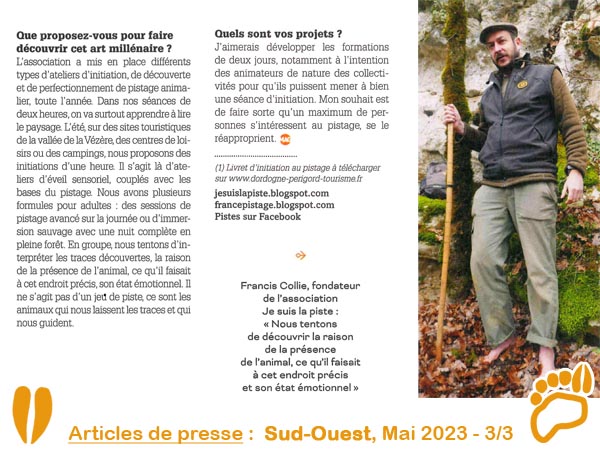 J’ai testé en Dordogne – le Pistage, 2025/2026, T.Martin :